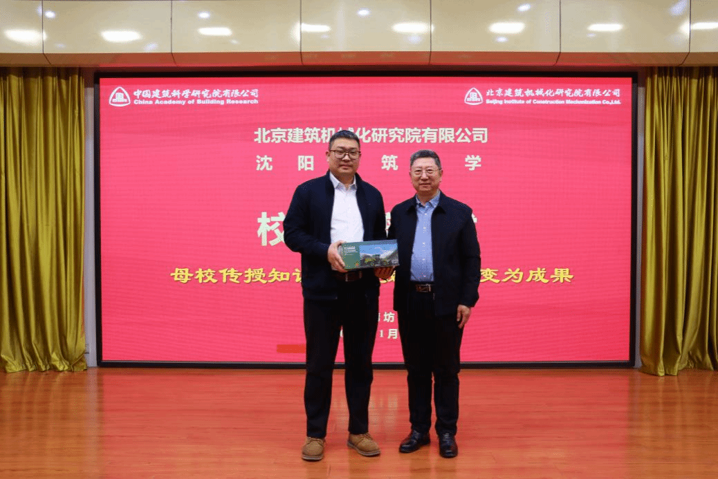 1月11日,学院一行赴北京建筑机械化研究院有限公司进行调研交流。董事长宫剑飞对石怀涛一行表示热烈欢迎,介绍了公司在机械建造与高端装备等领域的发展成效,回顾了双方已有合作成果,并表示期待进一步深化在科研成果转化、实习基地共建与人才联合培养等方面的合作,共同推动人才培养与产业创新深度融合。石怀涛对北京建机院长期以来的支持表示感谢,指出此次战略合作协议的签署是双方优势互补、资源共享的重要举措,希望以此为依托拓展学生实践平台,培养更契合产业需求的高素质人才。会上,双方围绕科研协作、人才培养、基地共建等议题展开深入交流,正式签署实习就业基地校企合作协议。侯宝佳作为校友代表为沈建大捐赠工程机械模型并合影留念。